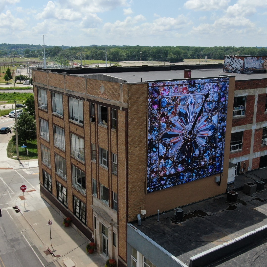 Visitors and residents in Downtown DSM are invited to the Western Gateway neighborhood to see TimePiece by Oyoram, which is located at The Fitch Building, facing the John & Mary Pappajohn Sculpture Park.